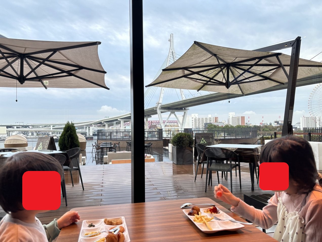 私たちは全員の意見が一致で和洋料理の3Fのダイニング ブリックサイドを選択し、天気があいにくの雨だったため、テラス席は利用できませんでしたが窓側の席で大阪ベイエリアを見ながら食べる朝食は最高でしたね。