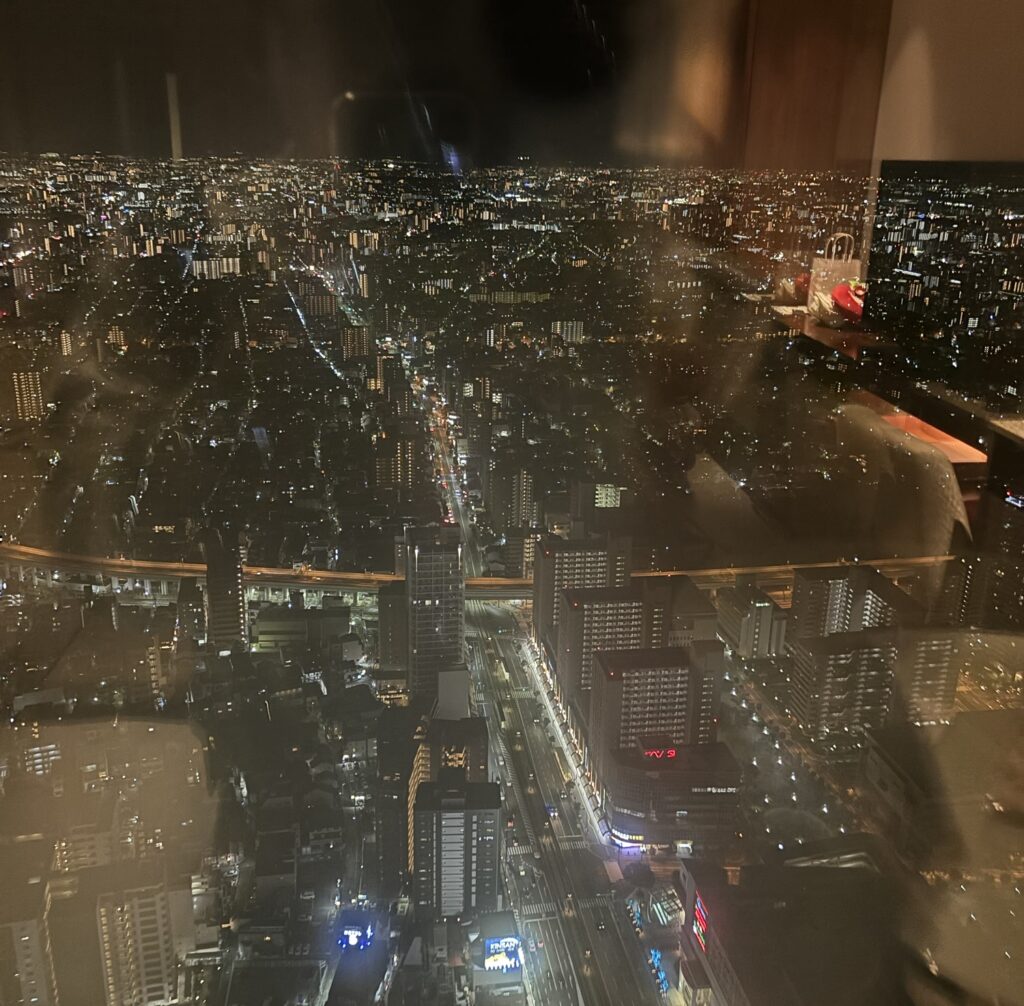 300mの超高層ビル「あべのハルカス」に位置し、お部屋も38階から55階に位置しており大阪市内の絶景が楽しめます。夜景も素敵で50階のお部屋でしたが地上で走っている車が豆粒みたいにめっちゃ高いです!