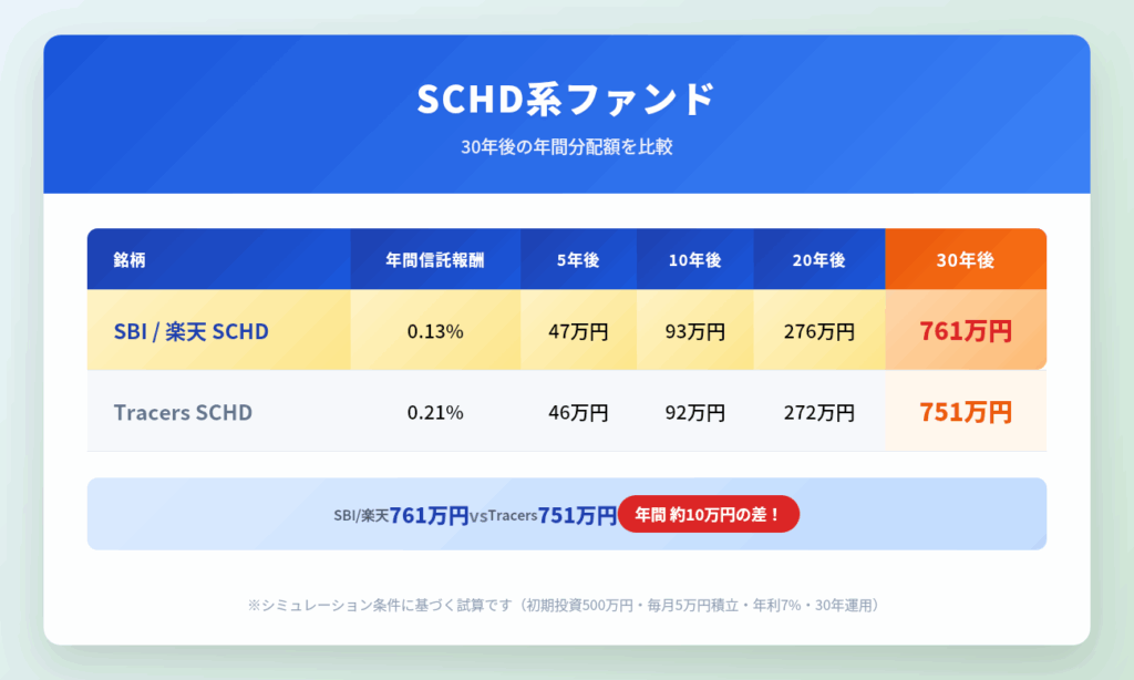 | 項目 | SBI SCHD | 楽天SCHD | Tracers SCHD |